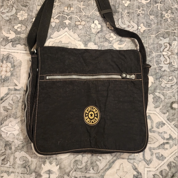 Well loved Kipling bag. has some damage on front, no monkey, and pen and sharpie marks on inside, including on label. Very roomy, can be unzipped to expand. many pockets and has key clip. great for travel