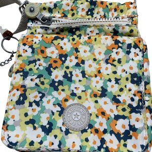 Kipling Floral Cross Body Purse w/Key Chain Adjustable Strap