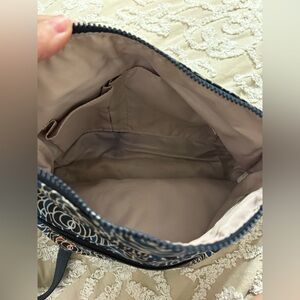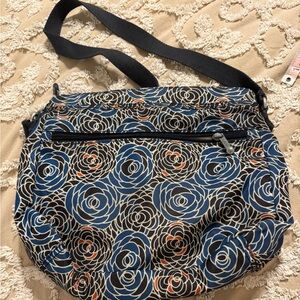 Stylish and versatile shoulder bag featuring a striking floral pattern. Perfect for adding a touch of elegance to any outfit. The blue and black design makes it a standout accessory.
