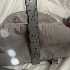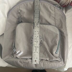 Stylish gray backpack by Kipling. Features a spacious front pocket and adjustable straps.