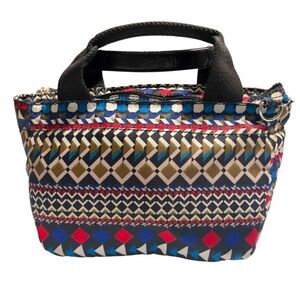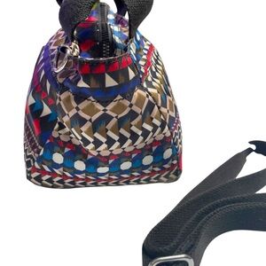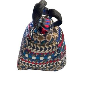 Kipling Jeremiah Tote Shoulder Bag Multicolor Aztec Geometric Print Zip Closure