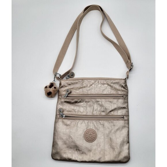 Kipling Keiko Crossbody Gold Metallic Crossbody Monkey Keychain Purse