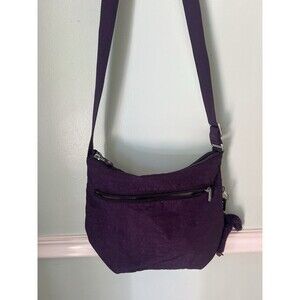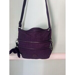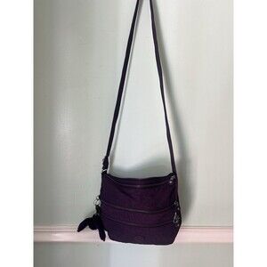 Kipling Keiko Dark Plum Tonal Nylon Crossbody Bag + Monkey Key Chain Purple