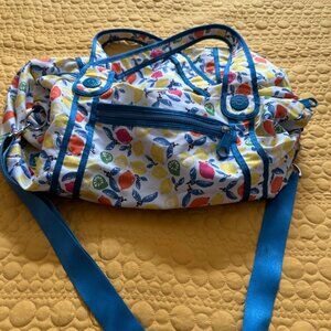 Kipling Large Citrus PrintWeekender Duffle Bag Tote Travel Garilla Face Keychain