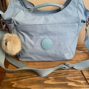 Great shape! Used for two weeks on vacation. No holes or stains. Maybe a few slight areas need a wipe down but these purses clean up beautifully! Cute tan polka dot pattern on the inside! Roomy! Long adjustable strap. Gorgeous colors! Fun rounded classic monkey charm! Clean home!