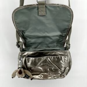 Kipling Maceio Metallic Crossbody Bag Adjustable Strap Keychain Zip Silver OS