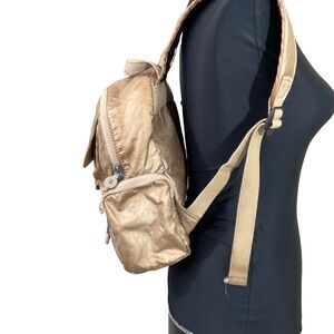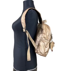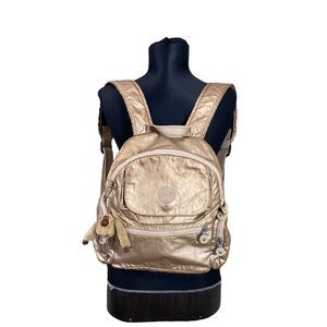 Very good clean Kipling Matta Up Backpack Travel Bag Polyamide Metallic Gold w Monkey keychain