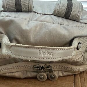 Stylish Kipling backpack in metallic silver. Features multiple compartments including one for laptop or tablet. Perfect for everyday use.