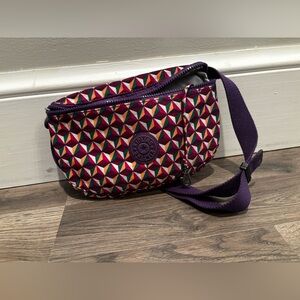 Kipling Multicolor belt Bag with Purple Strap travel summer vacation convenient