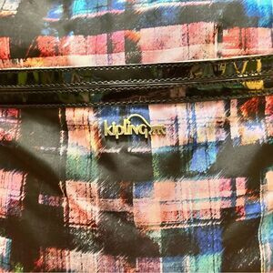 Kipling Nylon Large Lightweight Shoulder Tote Bag measuring 18” L x 14” H x 5”1/2 D multicolor one zip pocket front and two pockets sides