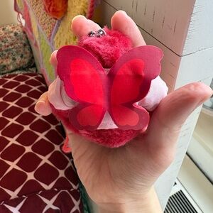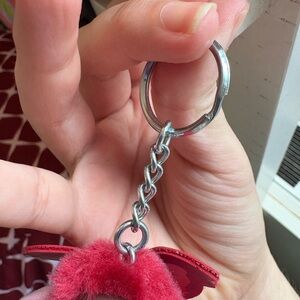 Cute monkey keychain with a rainbow shirt. Features vibrant red fur. Kipling rare monkey