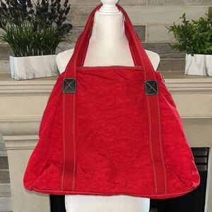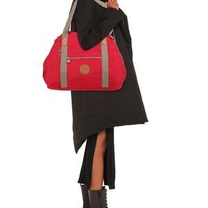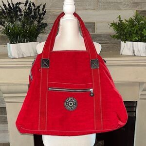 Kipling Red Travel Bag with Durable Canvas and Zipper Closure. No monkey