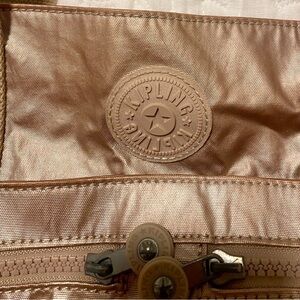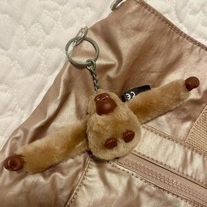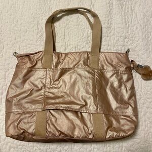 Kipling Rose Gold Metallic Tote Bag with Monkey Keychain