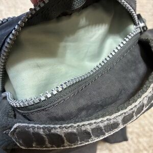 Backpack is in good pre-owned condition. The top handle strap has cracking on the fabric. Marks in each or the compartments (pictured). Smoke free and pet free home. Length-15”, height-17”, and width-7”.