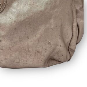 Any flaws to note: there are marks and discoloration all throughout the bag from use, missing monkey key chain