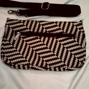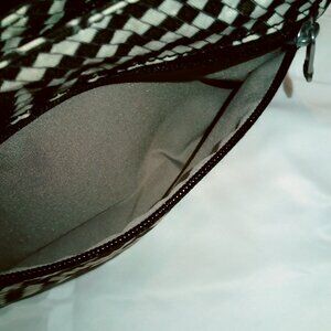 Main zip compartment with 1 zip pocket and front exterior pocket is a full wallet with 8 credit card slips - 1 zip pocket - and money divider, bag has 1 exterior large back slip pocket. Awesome small handbag will fit any cell phone easily.
