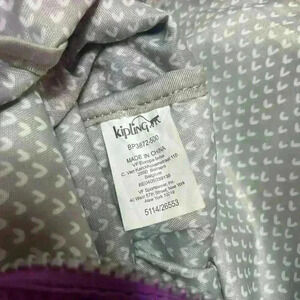 Kipling Small Medium Laptop Backpack Purple Drawstring Monkey Zip Magnetic
