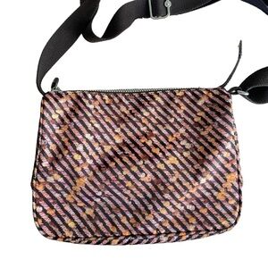 Kipling Striped Messenger Crossbody Bag Adjustable Strap Medium Zip Pouch Nylon