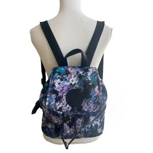Kipling Vtg Mini Backpack Blue Floral Adjustable Straps Sven Monkey Keychain