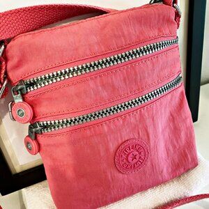Kipling Womens Top Zip Crossbody Handbag Pink Zipper Pockets Key Fob Lined