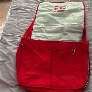 Red, never used Kipling messenger bag, perfect for laptop and all accessories