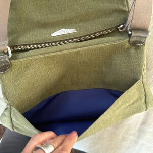 Kipling moss green with colbalt blue lining crossbody bag