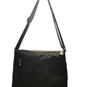The Kipling Black Messenger Bag is a sleek and functional accessory crafted from durable nylon, perfect for daily commutes or travel. Its adjustable strap ensures comfort, while the classic black color adds a touch of sophistication. Designed with practicality in mind, this bag is an ideal choice for those seeking both style and utility.