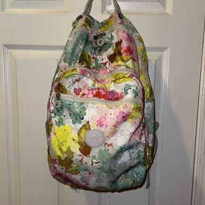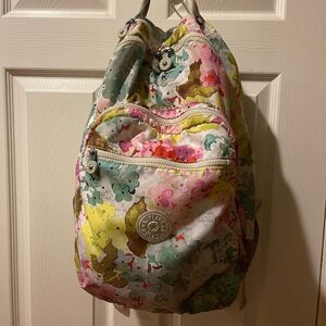 Kipling Clas Seoul Large 15" Laptop Backpack (Luscious Floral Nylon Front zipper pocket ,second front zipper the inside has two side pockets.top zipper a laptop compartment a side compartment.pre owned in good used condition signs of wear on the inner lining side compartment see all pictures any questions please message.F1