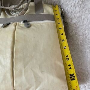 Kipling off white Nylon shoulder bag with gray fabric trims and straps .Two front zipper pockets a front zipper compartment a back compartment with snap closure ,top zipper the inside lining has a side zipper two side pockets. Pre owned in good used condition no tear normal wear see all pictures any questions please message.F6