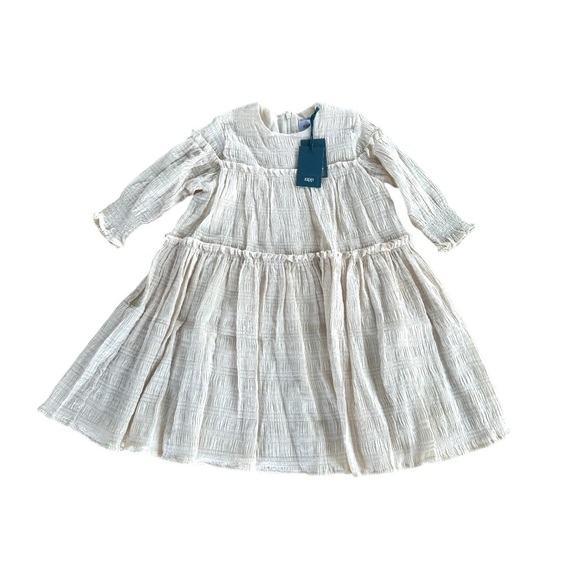Textured Dress in Stone. Fully lined. Back zip. Size 6Y.