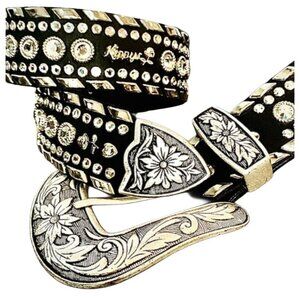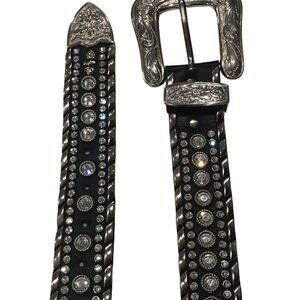 Kippy’s Swarovski Crystal Belt Sz S Cowgirl Western Black Leather Bling Handmade