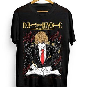 Kira Ryuk T-Shirt Death Note L Manga Strip Horror Anime Black Tee Shirt All Size