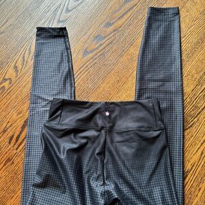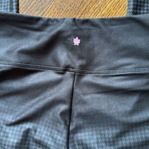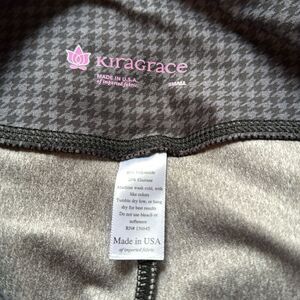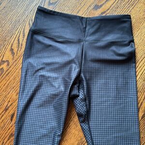 Kiragrace gray/black delicate houndstooth print flat seam leggings. Light sheen. Small. 9 inch rise. 29 1/2 inch inseam. Polyamide/elastane blend. New, without tags. Nonsmoking home.