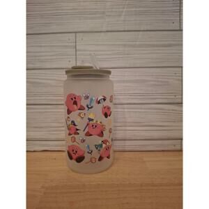 Cute Kirby is applied on the front side of the frosted cup and the back is plain. The cup comes with silicone lid, a glass straw, and care instructions.