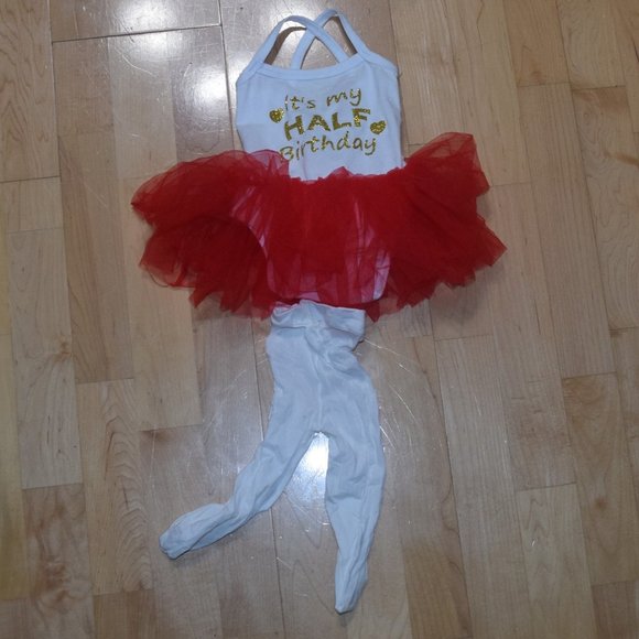 Kirei Sui Baby Girls' Sz 3-6m "HALF BIRTHDAY" TuTu Bodysuit Outfit
