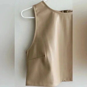 Kirious Faux Vegan Leather Cropped Tank Top, Tan/Cream Tank, Women’s Large
