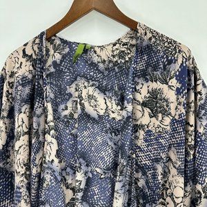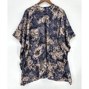 Kirious Kimono Top Womens Open Short Sleeve Lightweight Floral Beige, Blue S/M