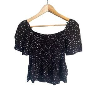 Kirious Los Angeles Black White Smocked Fit Flare Flounce Sleeve Top Sz S