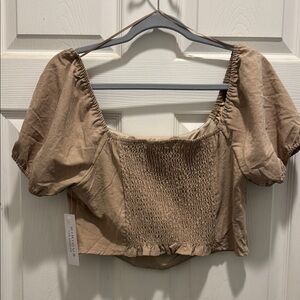 Kirious Los Angeles Tan Smocked Puff Sleeve Crop Top