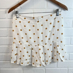 Kirious Los Angeles White/Gold Polka Dot Skirt Skort Size Medium Linen Blend.
