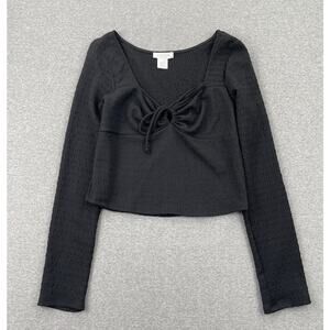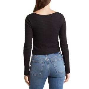 Kirious Nordstrom Top Womens M Black Tie Front Cinch Sweetheart Neck Long Sleeve