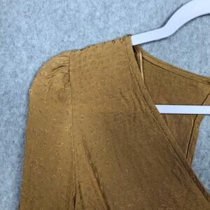 Kirious Shirt Womens Small Gold Blouse Crop Open Back Twee Festival Animal Print Mob Wife Cropped Smocked Keyhole Wrap Leopard Balloon Puff Long Sleeve V Neck Shiny