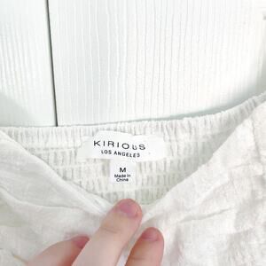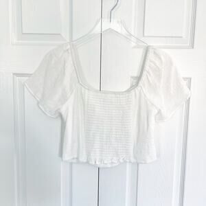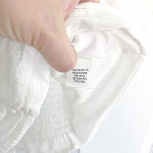 Short flutter sleeves. Partially lined. Smocked back. Front ruching/scrunch.