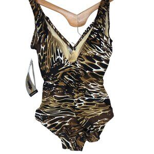 Kirkland Miraclesuit 8 One Piece Swimsuit Chocolate Marble Tummy Control Padded