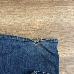 These blue jeans from Kirkland Signature showcase a chic flare and wide leg silhouette, ideal for a touch of retro style. The natural wear patterns and subtle fading enhance their timeless appeal, making them a versatile choice for any wardrobe.