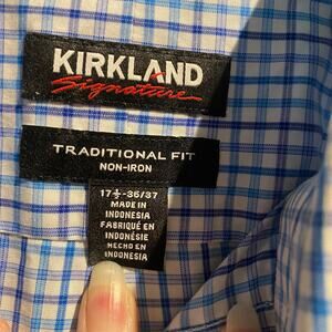 Kirkland Signature Dress Shirt Size 17 1/2, 36-37 Plaid Work Office Business