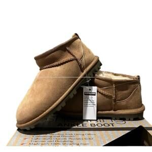 Kirkland Signature Girl’s Boots Shearling Easy Slip on Ankle Brown Size 1 NIB