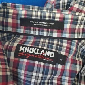 Kirkland Signature Men's L Dress Shirt Long Sleeve Blue Plaid Sport Fit