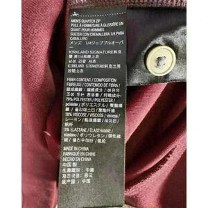 Kirkland Signature Men’s Quarter 1/4 Zip Pullover Burgundy Pocket Button Front M