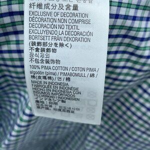 Men's checkered button-up shirt in green and blue. Features a traditional fit, non-iron design, and durable, breathable Pima cotton construction.